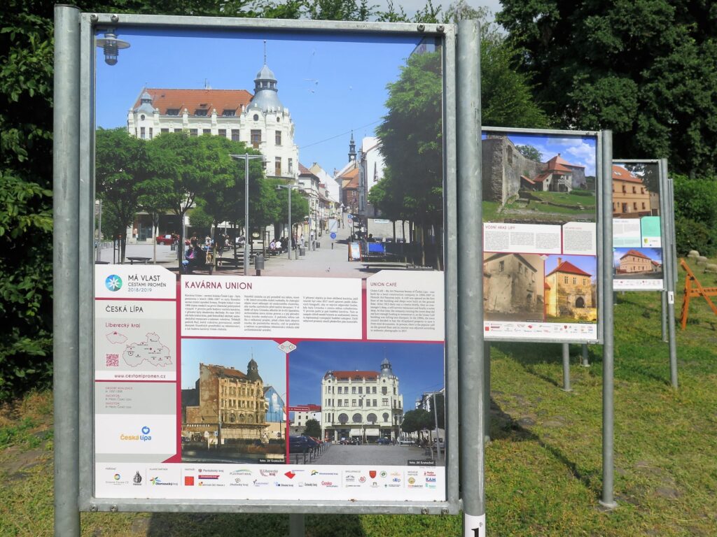 Takto vypadají panely. Plakáty standardně obsahují foto před a po proměně a jedna další (reprezentativní) fotografie současného stavu.