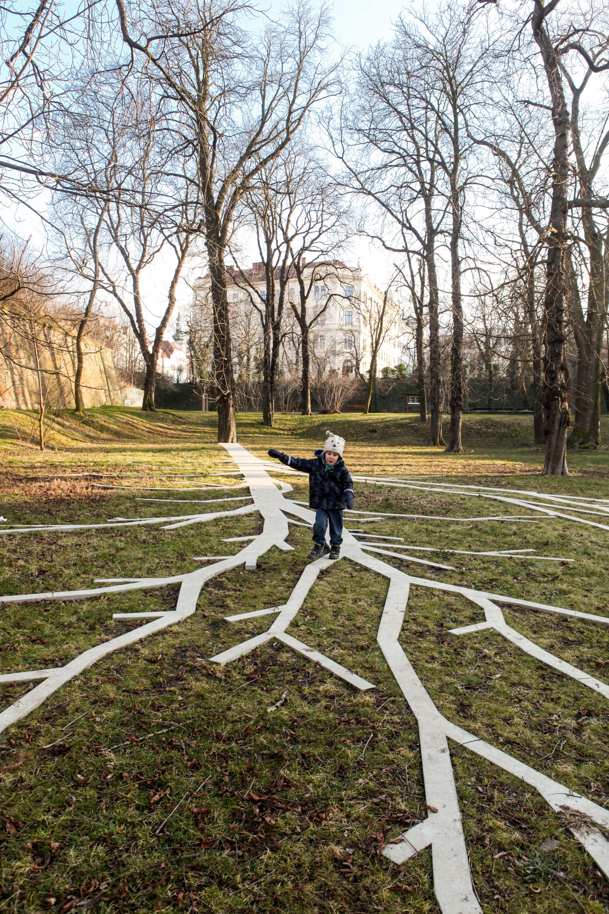 1. 3. 1977 se Max van Der Stoel, nizozemský ministr zahraničí a obránce lidských práv, setkal s filosofem a mluvčím Charty 77 Janem Patočkou. Schůzka se členem československého disentu namísto oficiální státní návštěvy vyvolala vlnu kritiky, stala se ale důležitým bodem legitimizace snah o svobodnou demokratickou společnost v normalizačním Československu, viditelným i za jeho hranicemi. Stín, vržený stromem v parku van Der Stoela v den čtyřicátého výročí této schůzky, je zachycen v betonovém odlitku. Pomník, monumentální ve své horizontalitě, nad terénem neviditelný, je pokorným záznamem lidského i politického gesta obou zúčastněných.