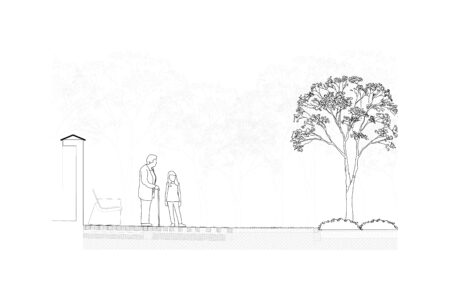 Lesní hřbitov obce Srbsko se nachází v malebné krajině Českého krasu. Hřbitov je usazen ve výseku borovo-listnatého lesa a jeho průčelí se vstupní bránou je orientováno do okolní krajiny. Projekt vstupního prostoru tvoří sjednocený a reprezentativní prostor. Koncepce úpravy vstupu na hřbitov je založena na myšlence uchování lesní struktury a navázání úpravy na kontext místa. Vstup je tvořen liniovým kompozičním principem, který vytváří příjemný rastr se stromy. Pomocí jednoduchých linií se potkává kulturně–společenská funkce hřbitova s lesní krajinou.